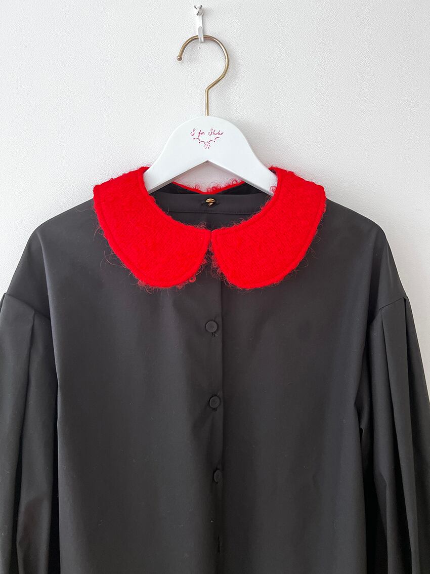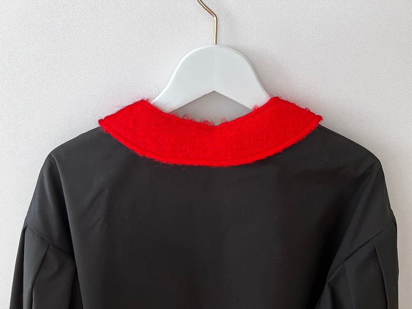 赤モヘアは2022年クリスマスコレクションのひとつ。イギリスで生産した特別なモヘア生地で、可愛らしいコーディネイトが仕上がります。